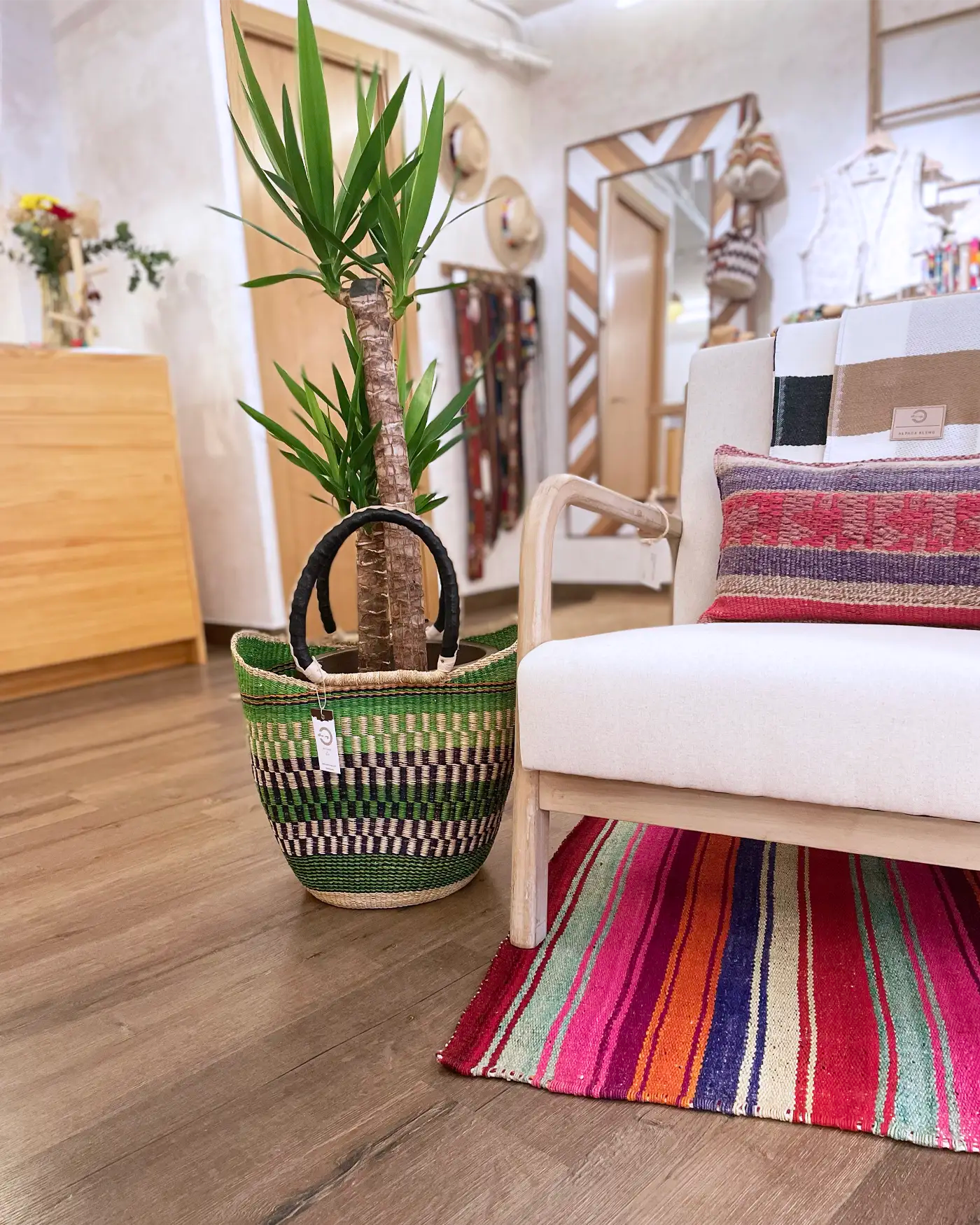 “Disfruta de materiales naturales, texturas y colores con piezas hechas por artesanos y pequeños productores de diferentes países. Productos elaborados en pequeña escala para una deco y estilo de vida más cómoda y alegre“