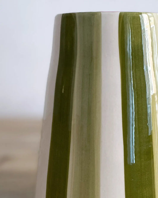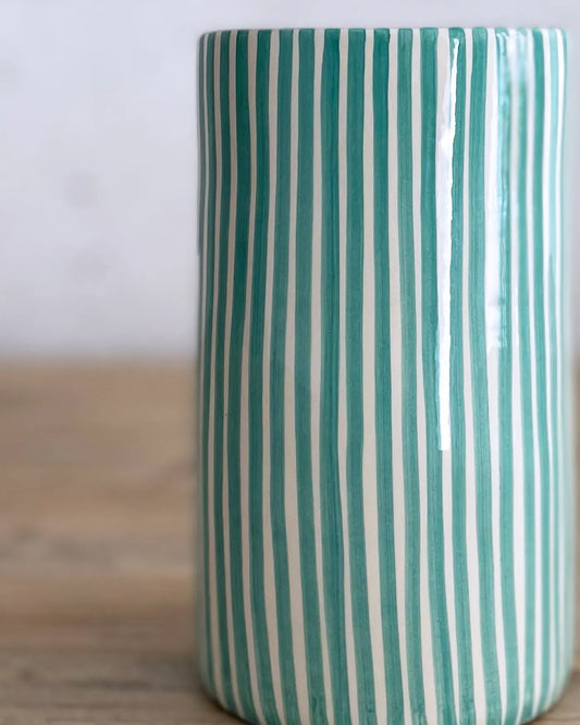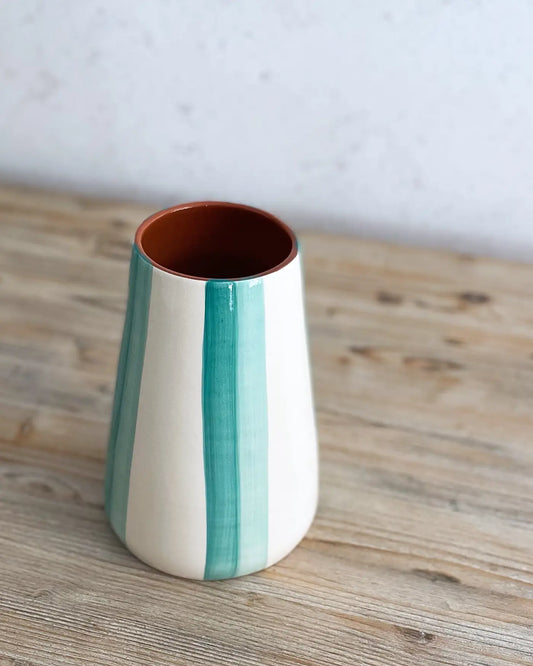 Jarrón Artesanal de Cerámica Rayas Turquesa L
