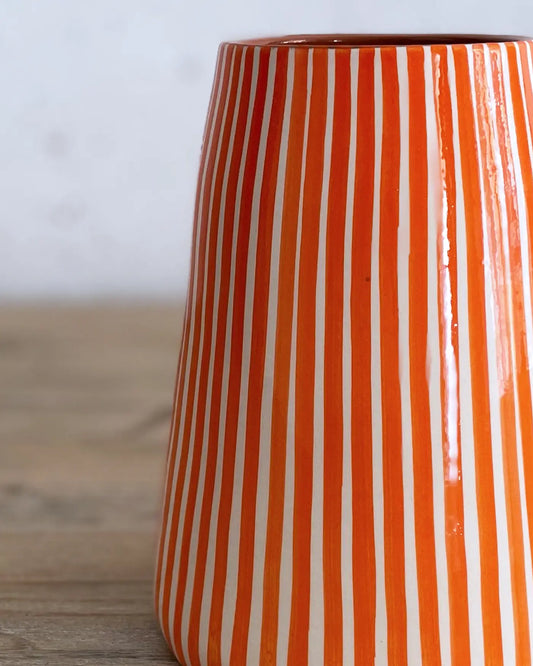 Jarrón Artesanal Vulcano Rayas Naranja M