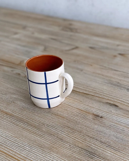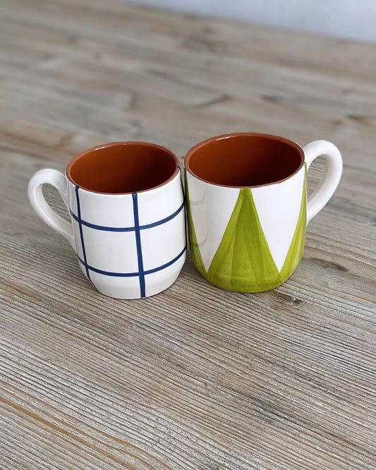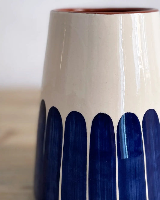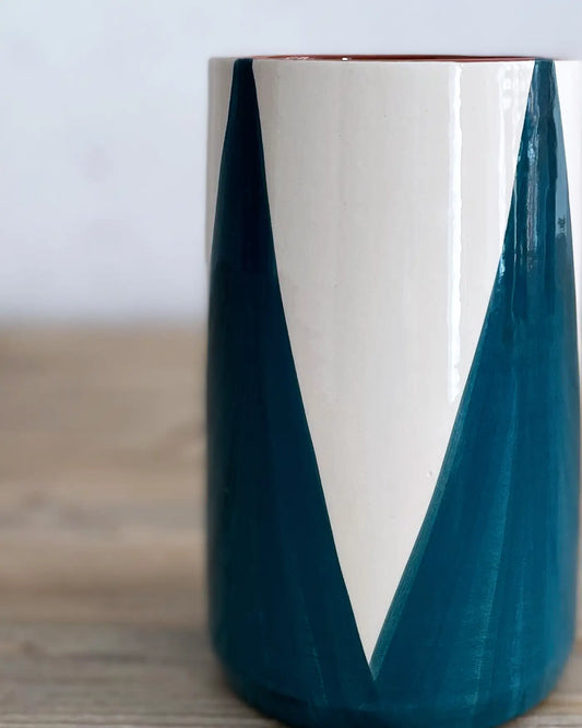 Jarrón Artesanal de Cerámica Triángulos Azul Deep M