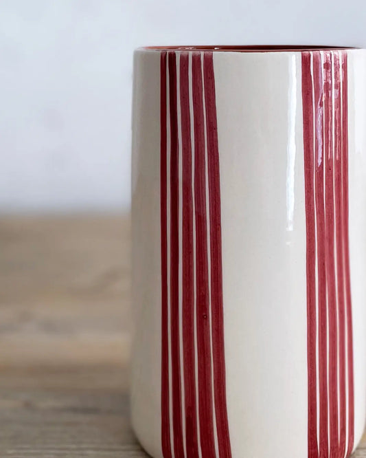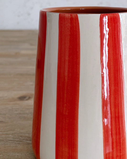 Jarrón Artesanal Vulcano Rayas Rojo S