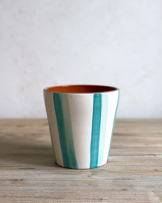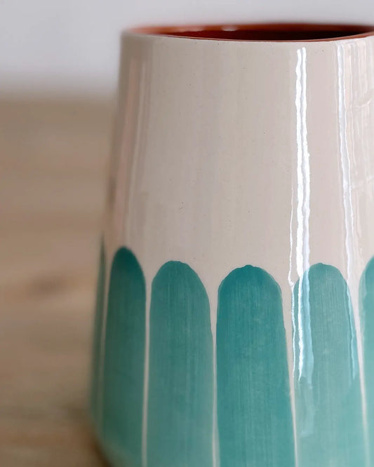 Jarrón Artesanal de Cerámica Rayas Turquesa M