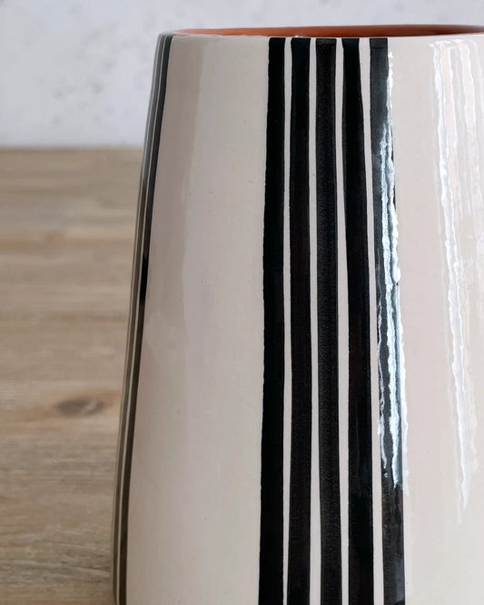 Jarrón Artesanal de Cerámica Triángulos Negro L