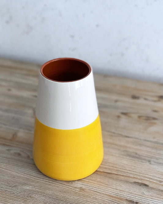 Jarrón Artesanal Vulcano Amarillo y Blanco L