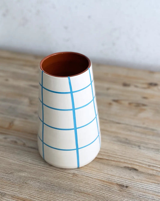 Jarrón Artesanal Vulcano Cuadros Celeste L