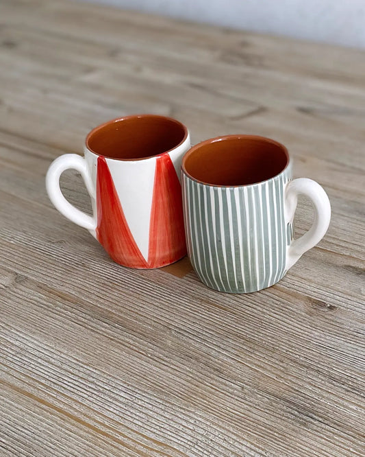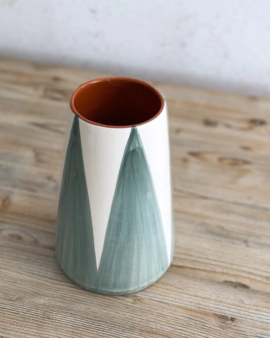 Jarrón Artesanal Vulcano Triángulos Verde Salvia L