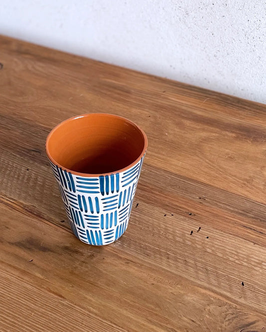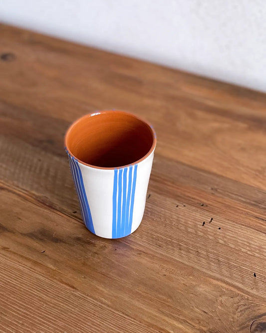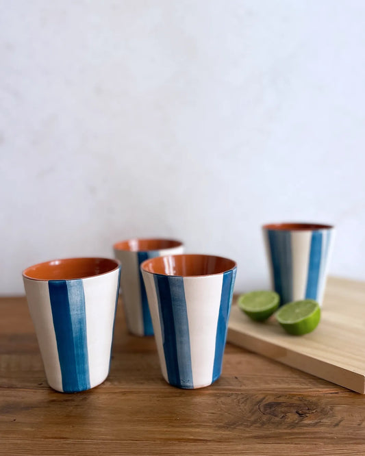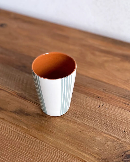 Vaso de Cerámica Artesanal Rayas Celeste