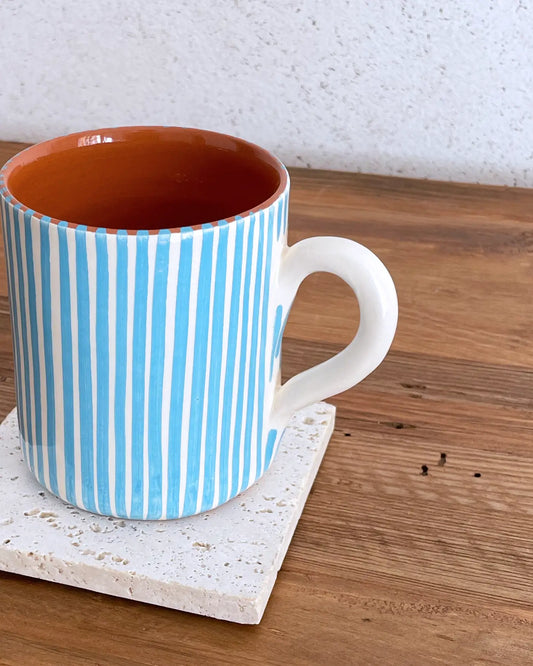 Taza Artesanal de Cerámica Rayas Azul Celeste