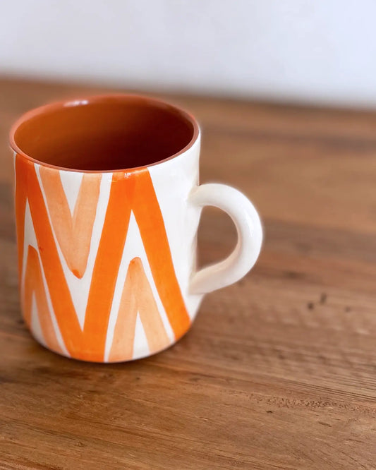 Taza de Cerámica Artesanal Triángulos Naranja