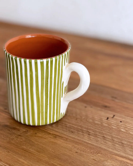 Taza Artesanal de Cerámica Rayas Verde