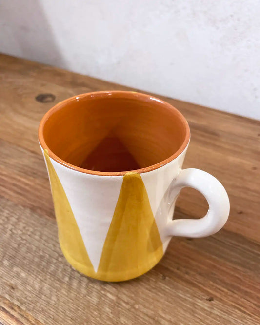 Taza Artesanal Ethnic Triángulos Amarillo Mostaza