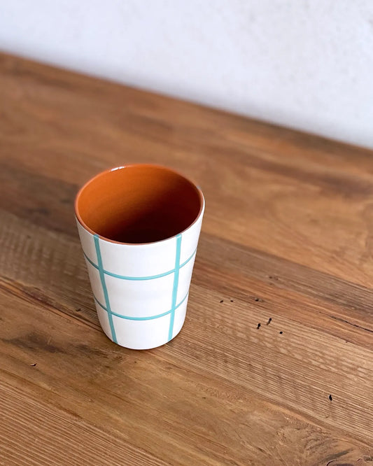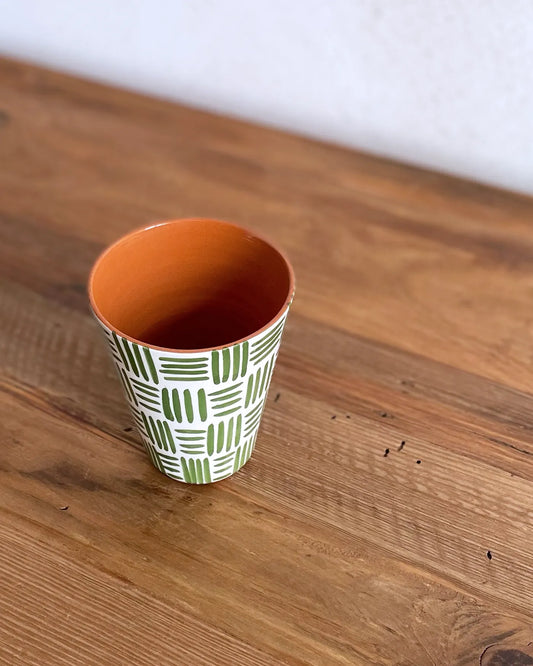 Vaso de Cerámica Artesanal Cuadros Verde Claro