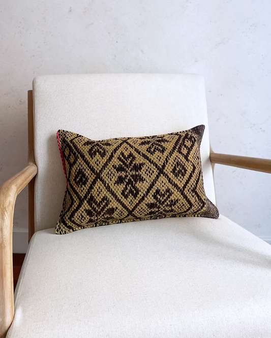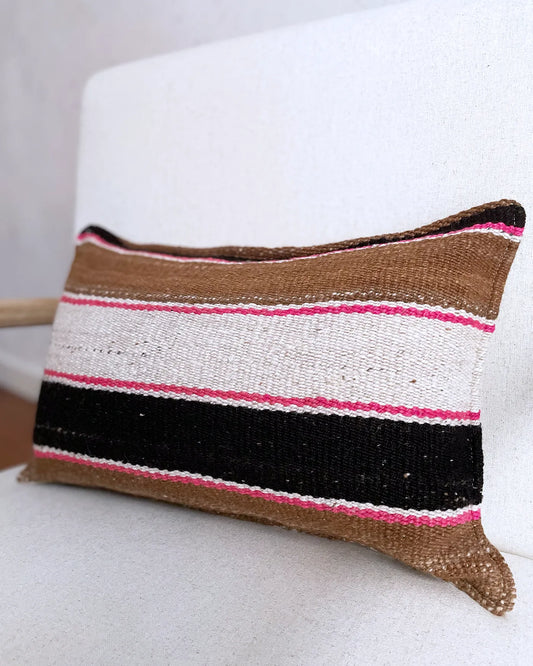 Cojín Artesanal Étnico Marrón y Rosa 30x50