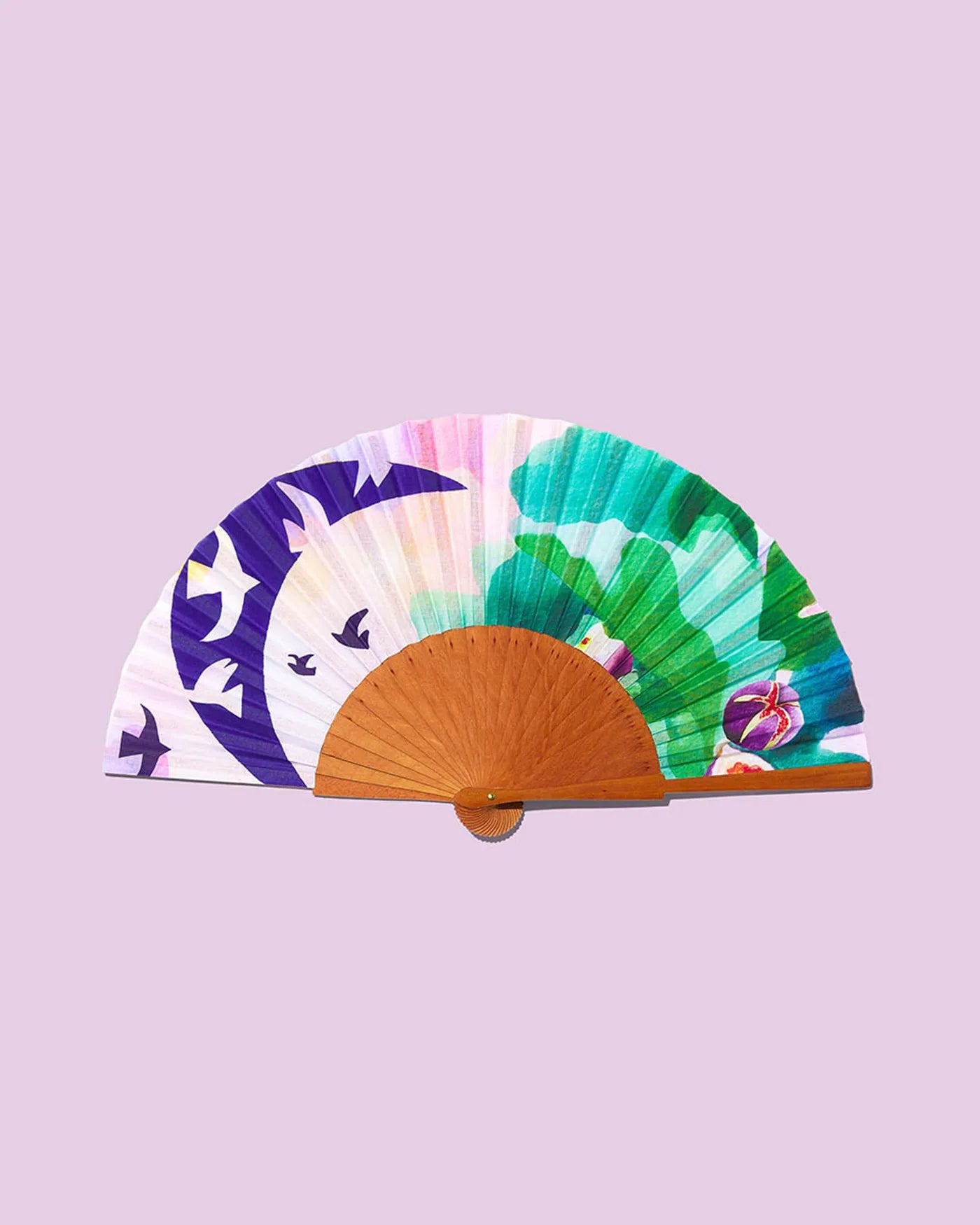 Each fan has a different style with illustrations that convey emotions, from dreamy landscapes to colorful and energetic prints. Thanks to its design and lightness, it will be your perfect companion for surviving the heat, showing off at special events, or making a great gift.