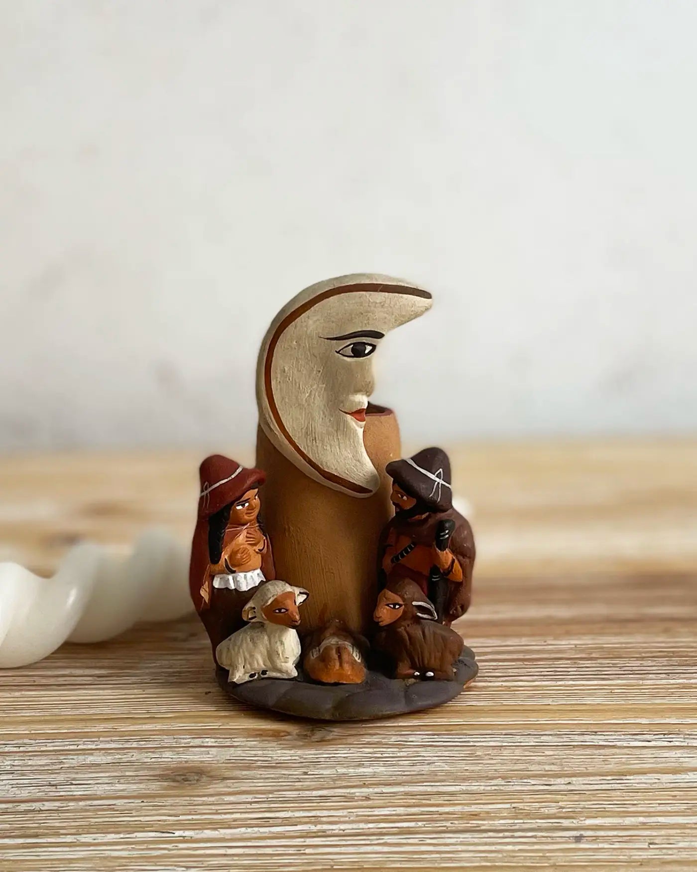 Celebrando el nacimiento, nuestros belenes de cerámica están hechos a mano en Perú. El trabajo de pintura, los detalles minuciosos y su estilo andino hacen que estas pequeñas piezas sean especiales y nos alegren cada temporada navideña.