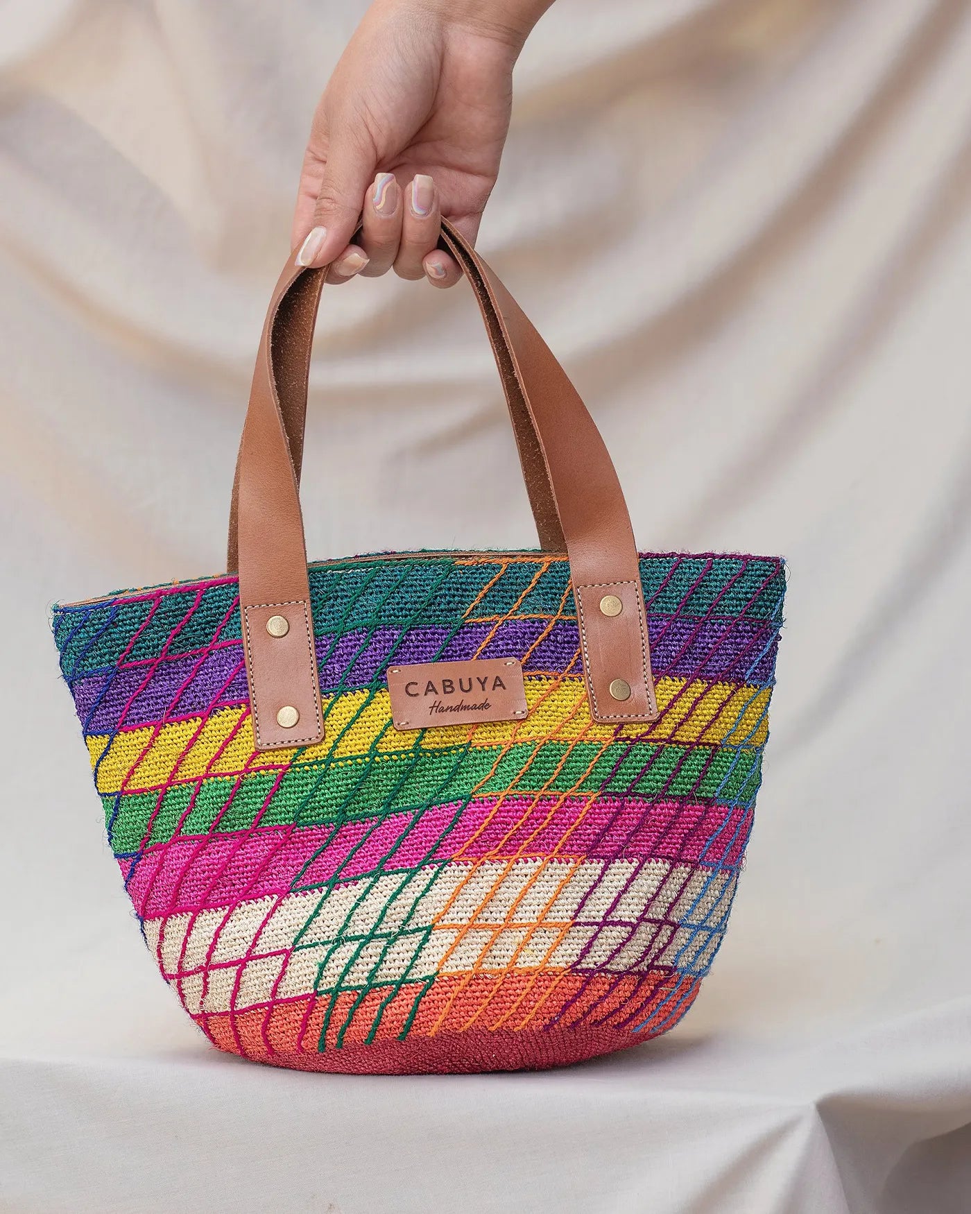 Handmade by indigenous women from the Andes region, woven with natural cabuya fiber, embroidered with cotton, and finished with high-quality, hand-tanned natural leather.