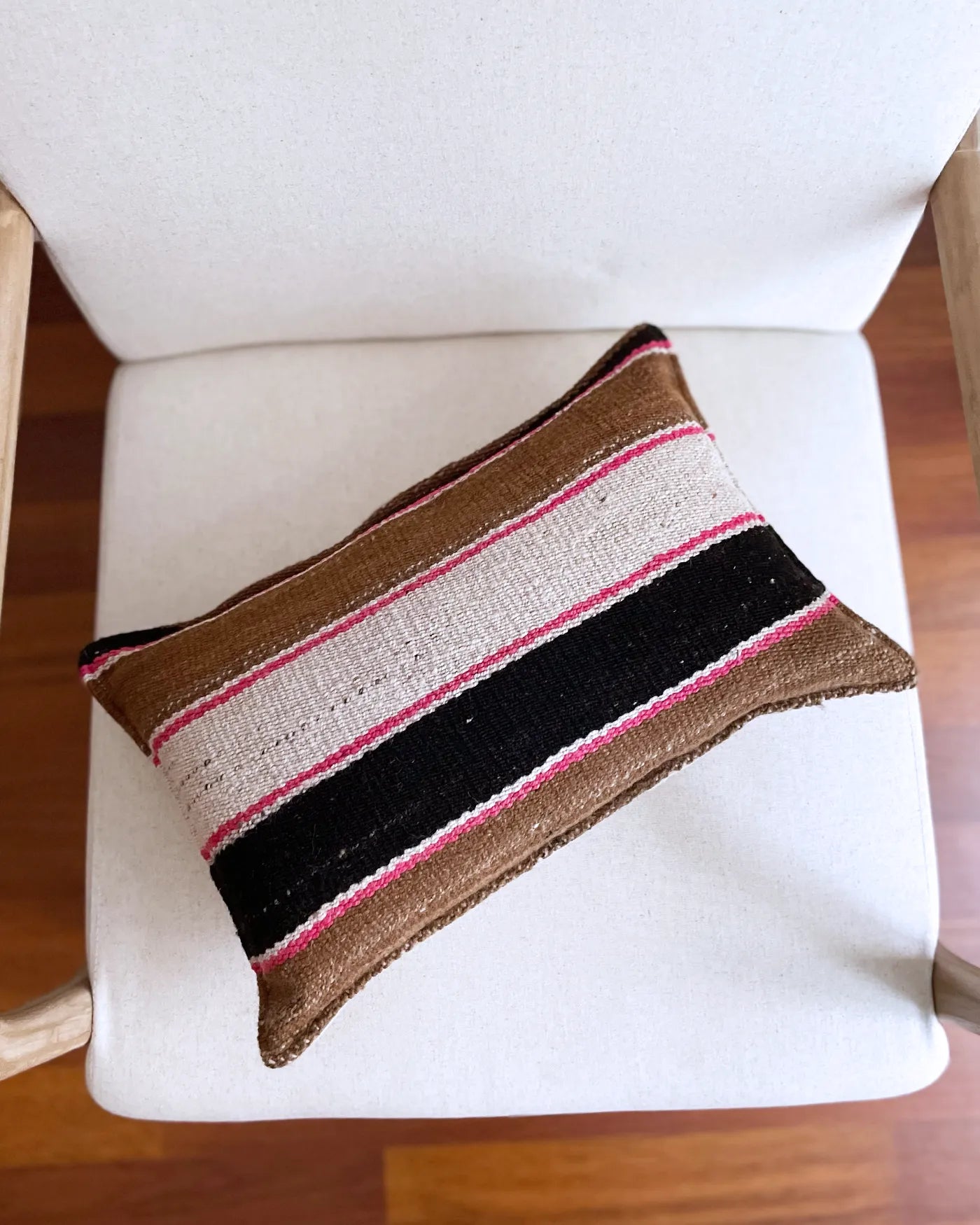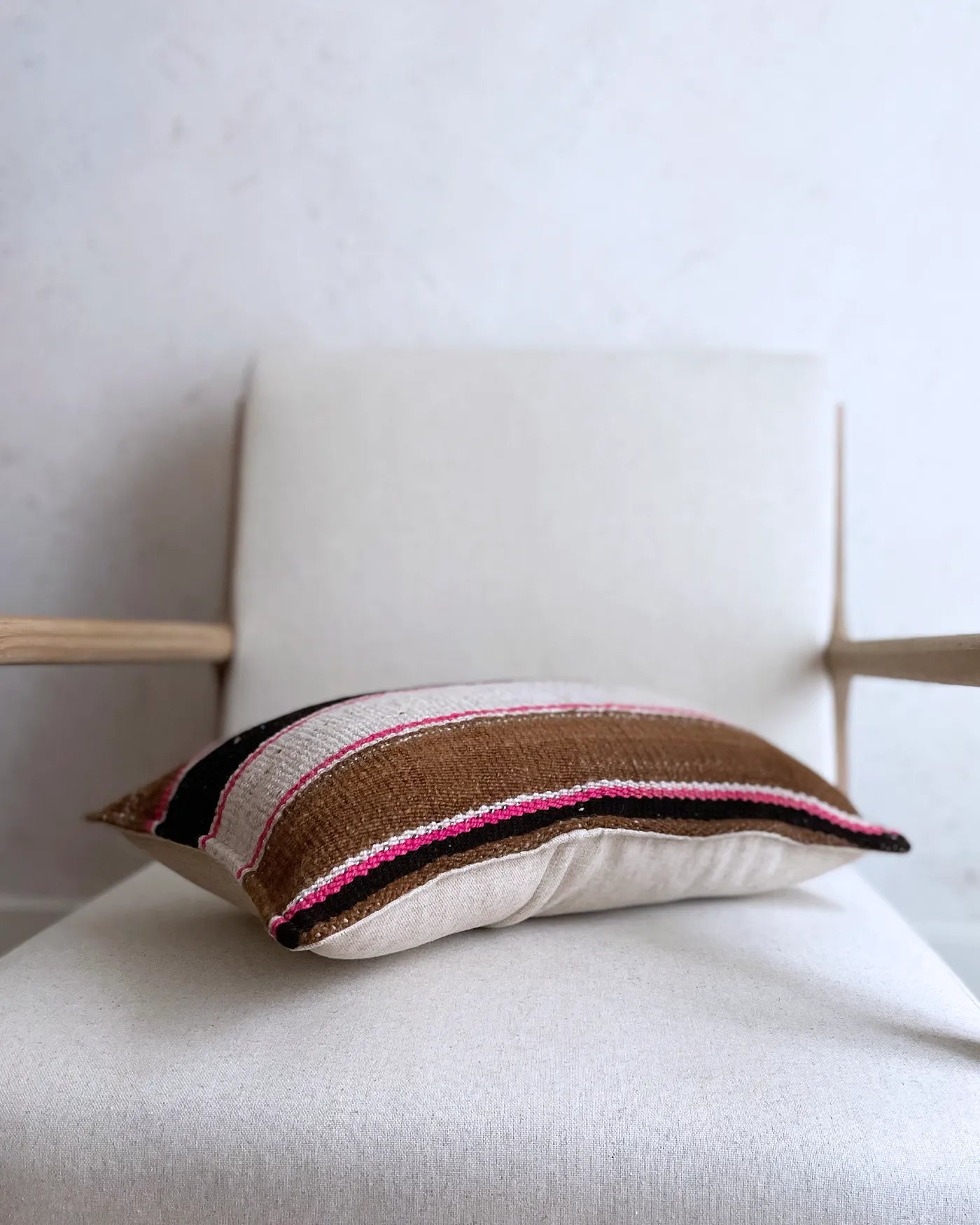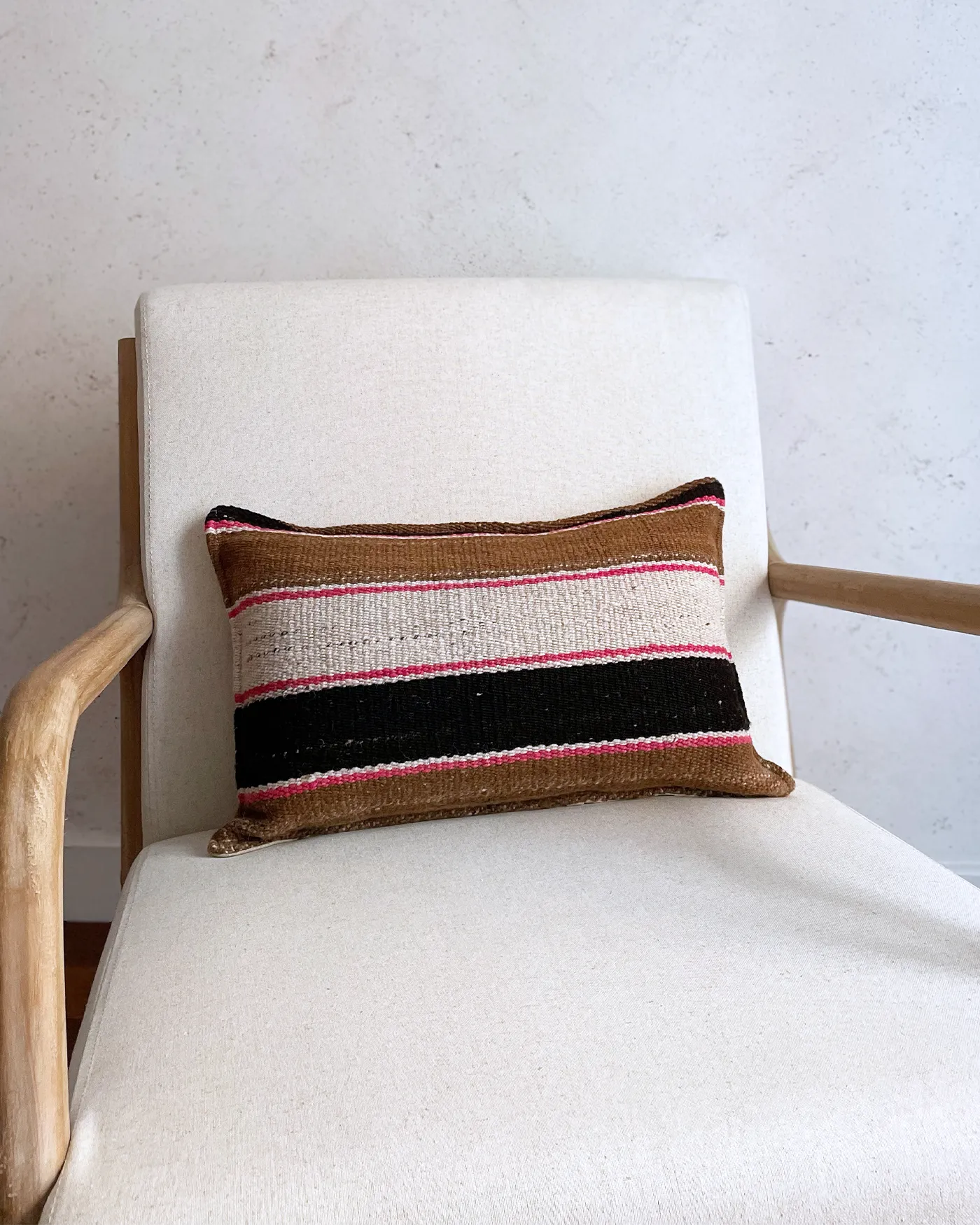 Cojín Artesanal Étnico Marrón y Rosa 30x50