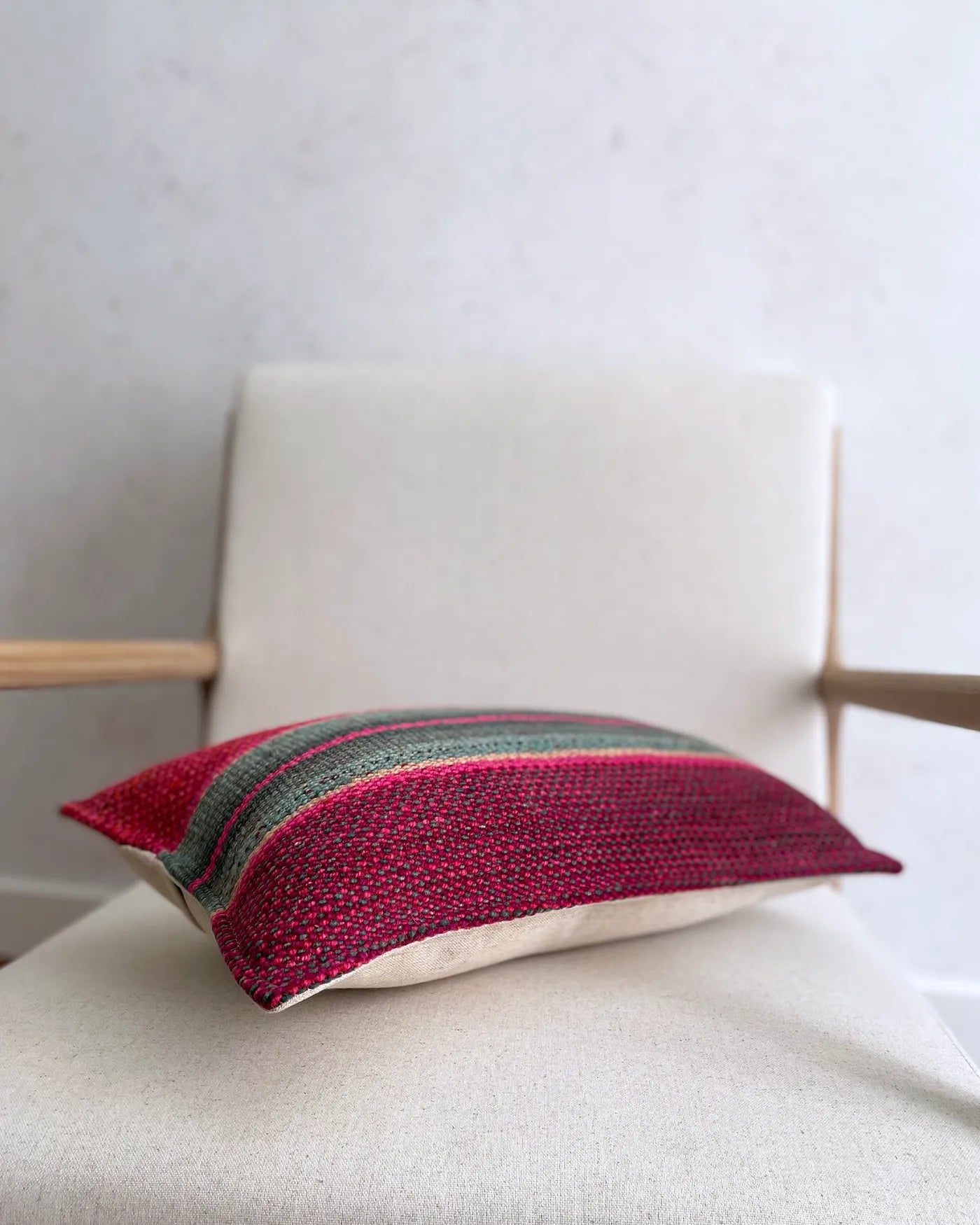 Cada uno de nuestros cojines étnicos son piezas únicas, están tejidos a mano en telar de cintura, se han empleado tintes naturales y otros recursos de la zona. Descubre el proceso de cómo se tejen tus cojines en los Andes peruanos aquí.