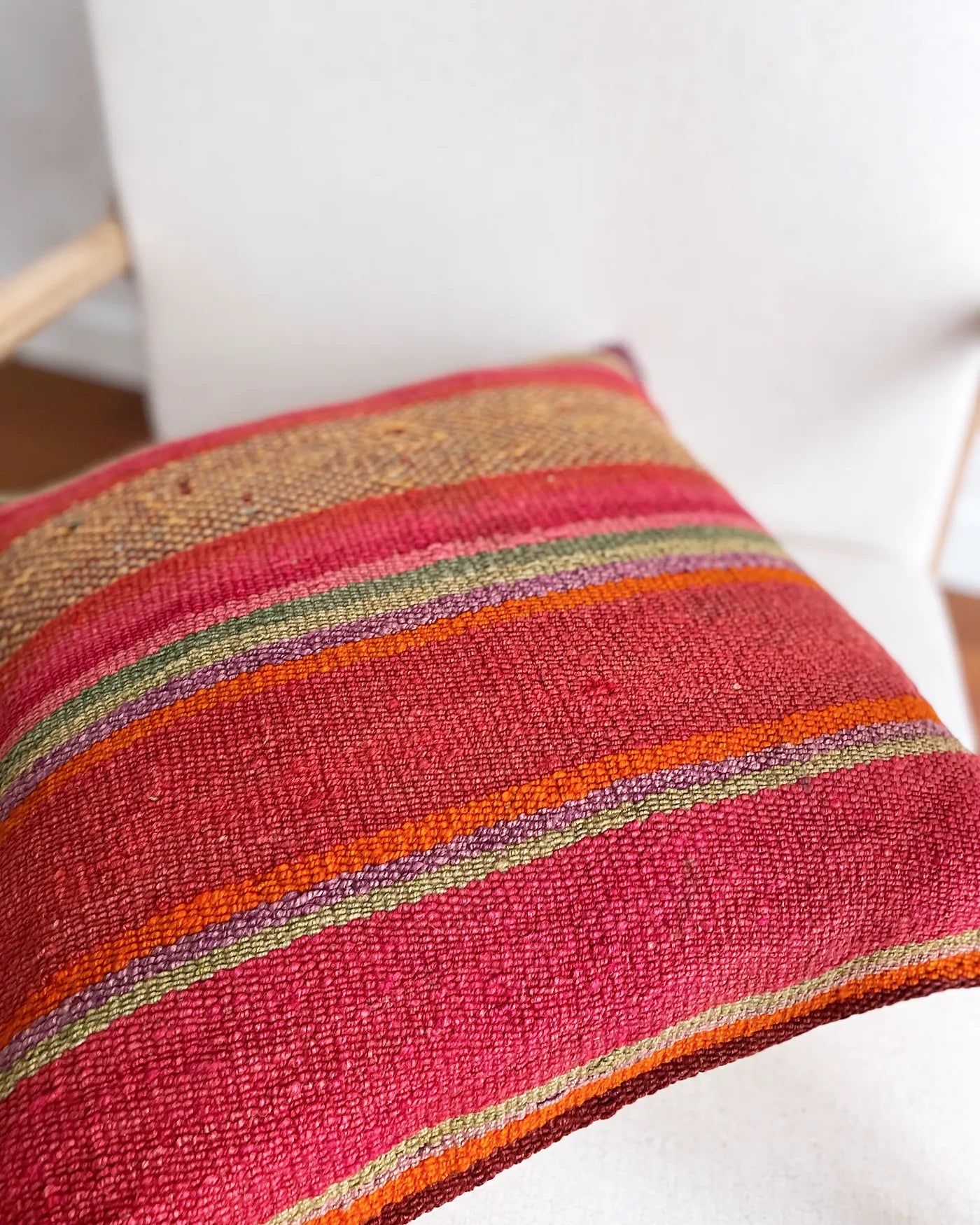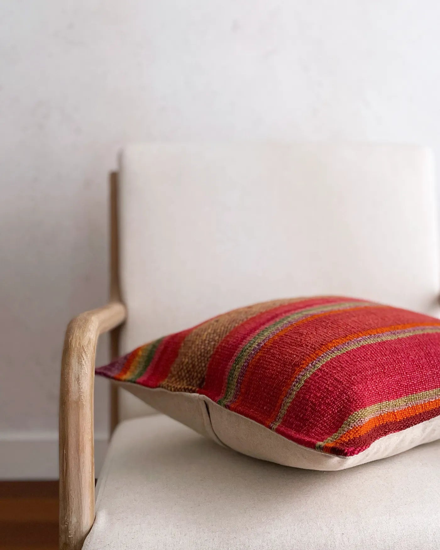 Cada uno de nuestros cojines étnicos son piezas únicas, están tejidos a mano en telar de cintura, se han empleado tintes naturales y otros recursos de la zona. Descubre el proceso de cómo se tejen tus cojines en los Andes peruanos aquí.