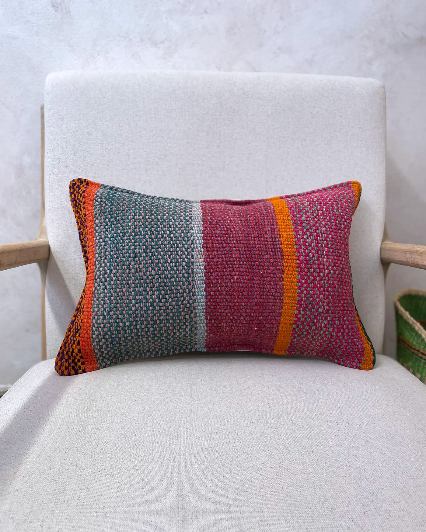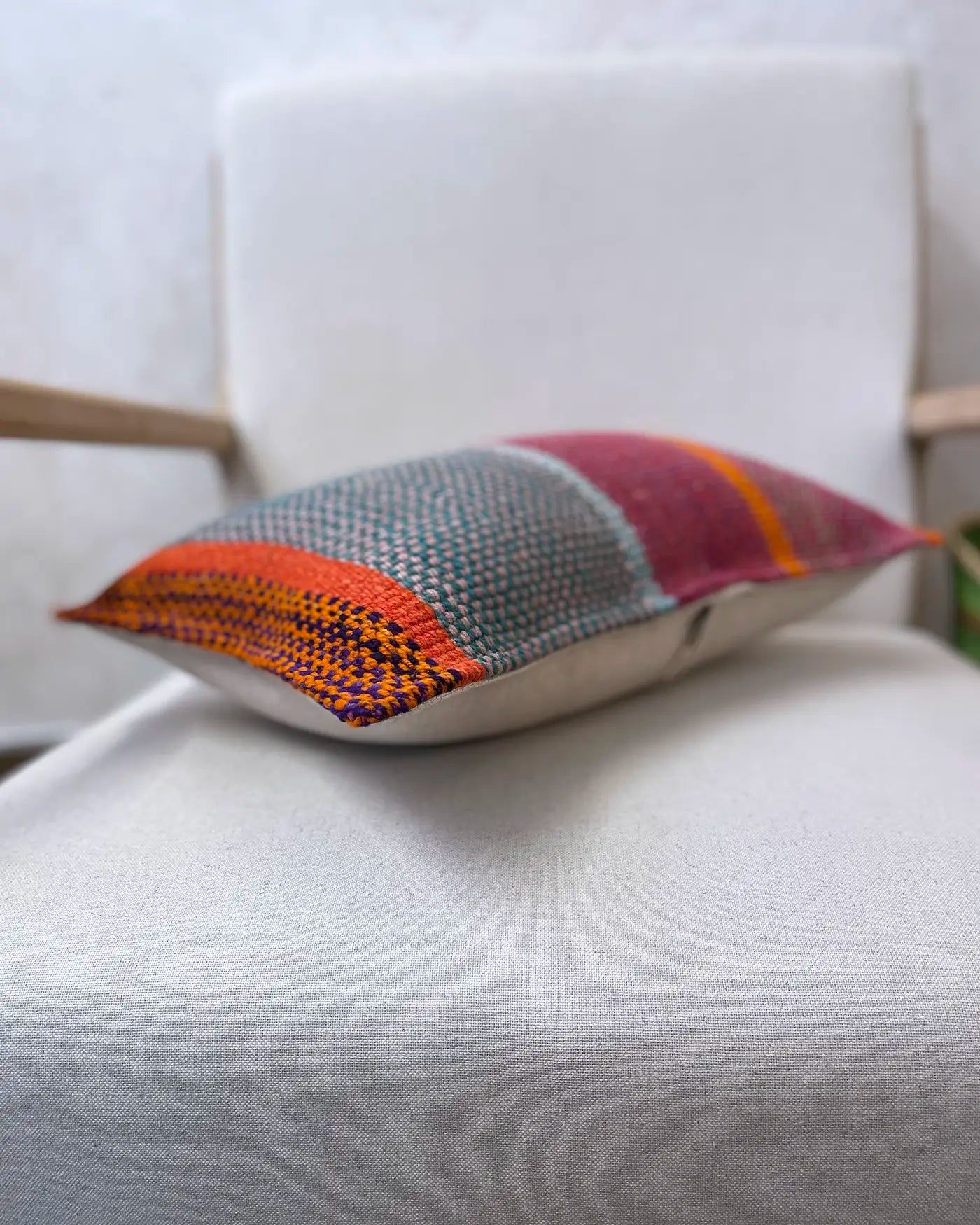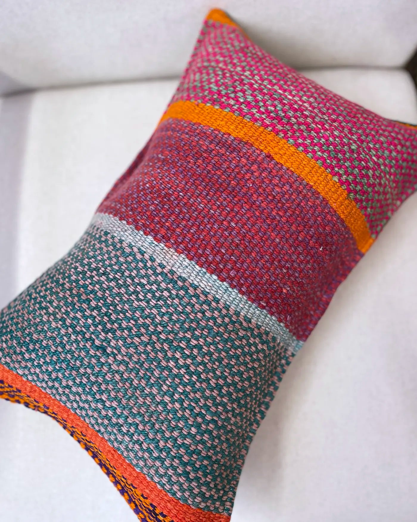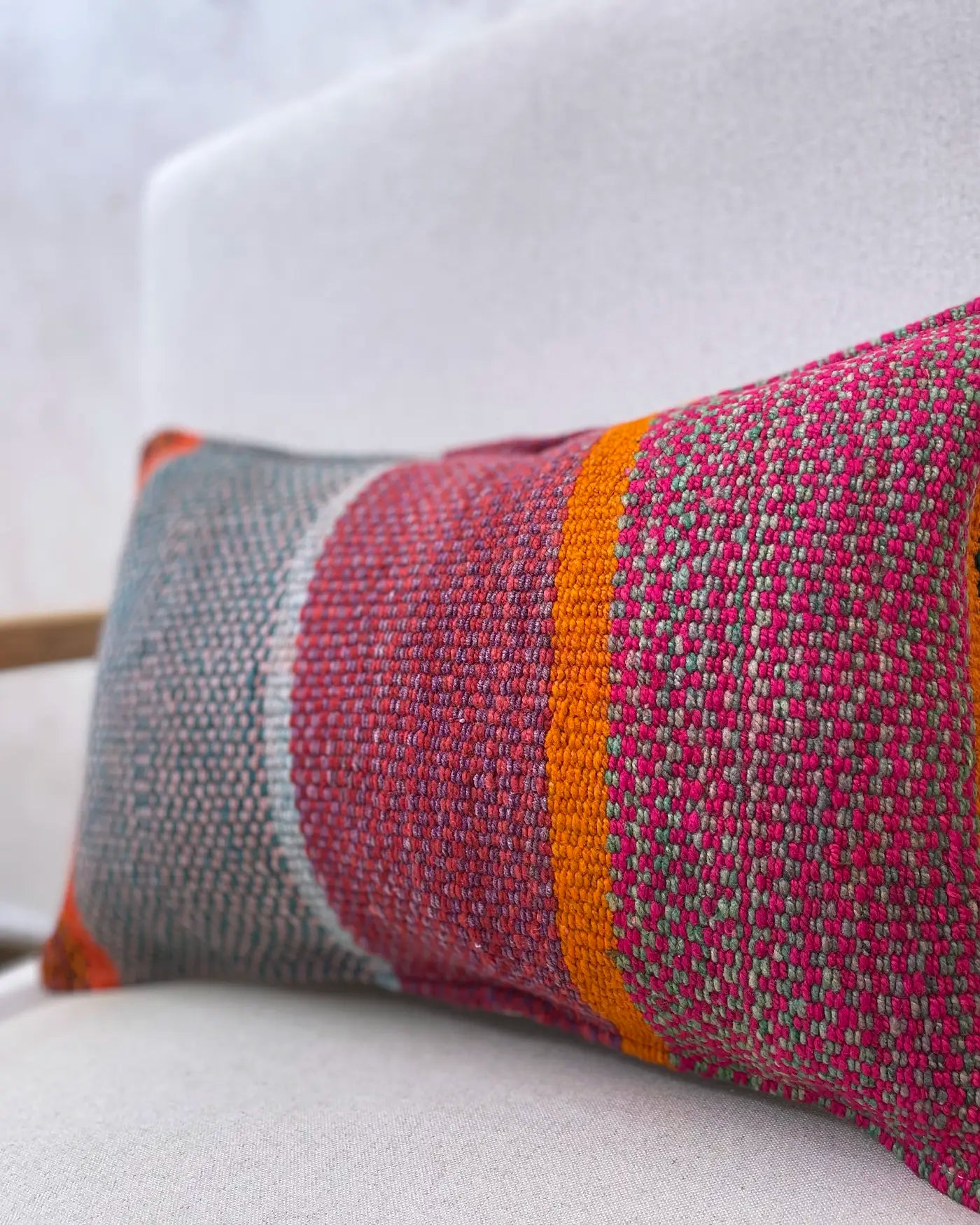 Cada uno de nuestros cojines étnicos son piezas únicas, están tejidos a mano en telar de cintura, se han empleado tintes naturales y otros recursos de la zona. Descubre el proceso de cómo se tejen tus cojines en los Andes peruanos aquí.