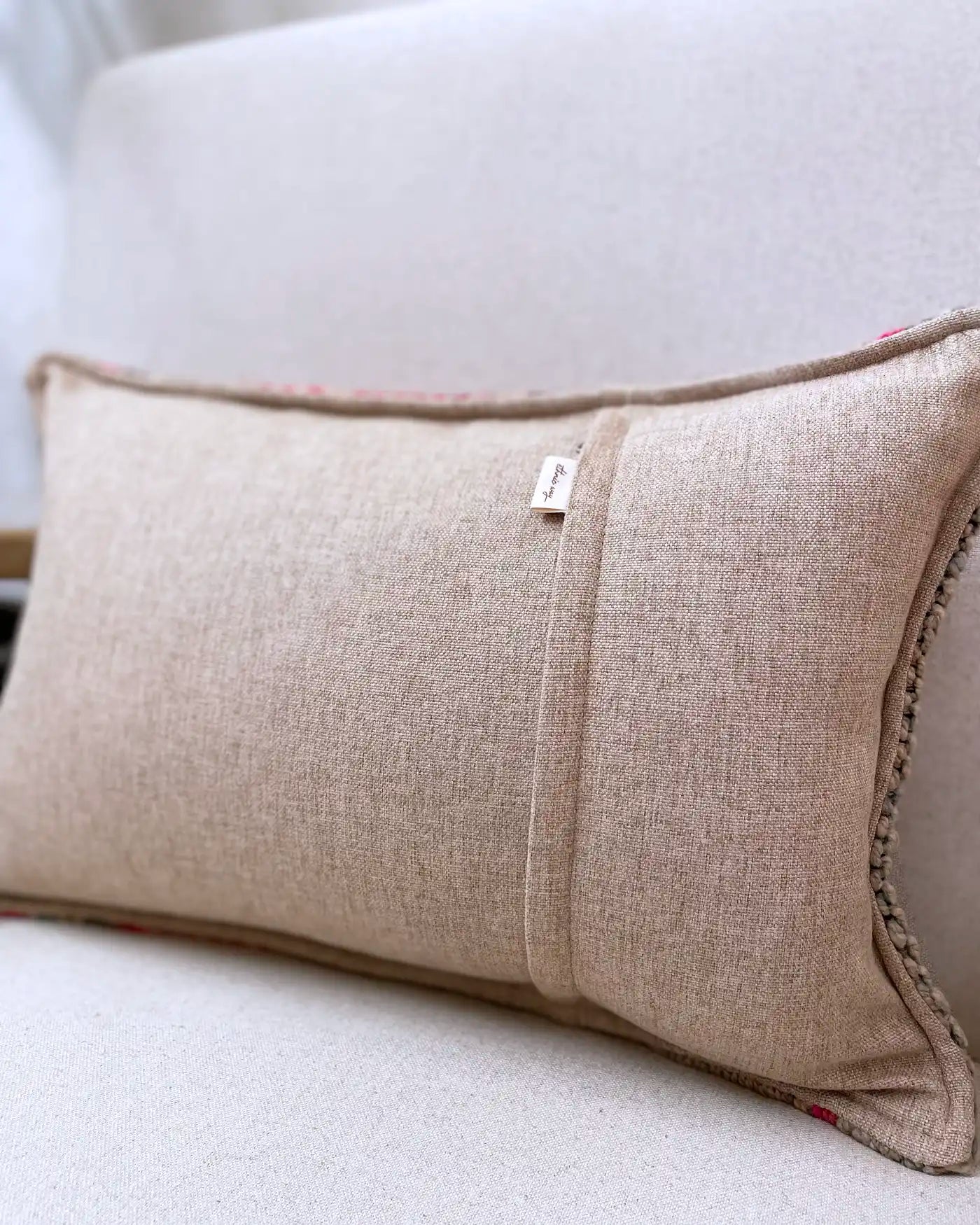 Cojín Étnico Peruano Azul y Fresa 30x50