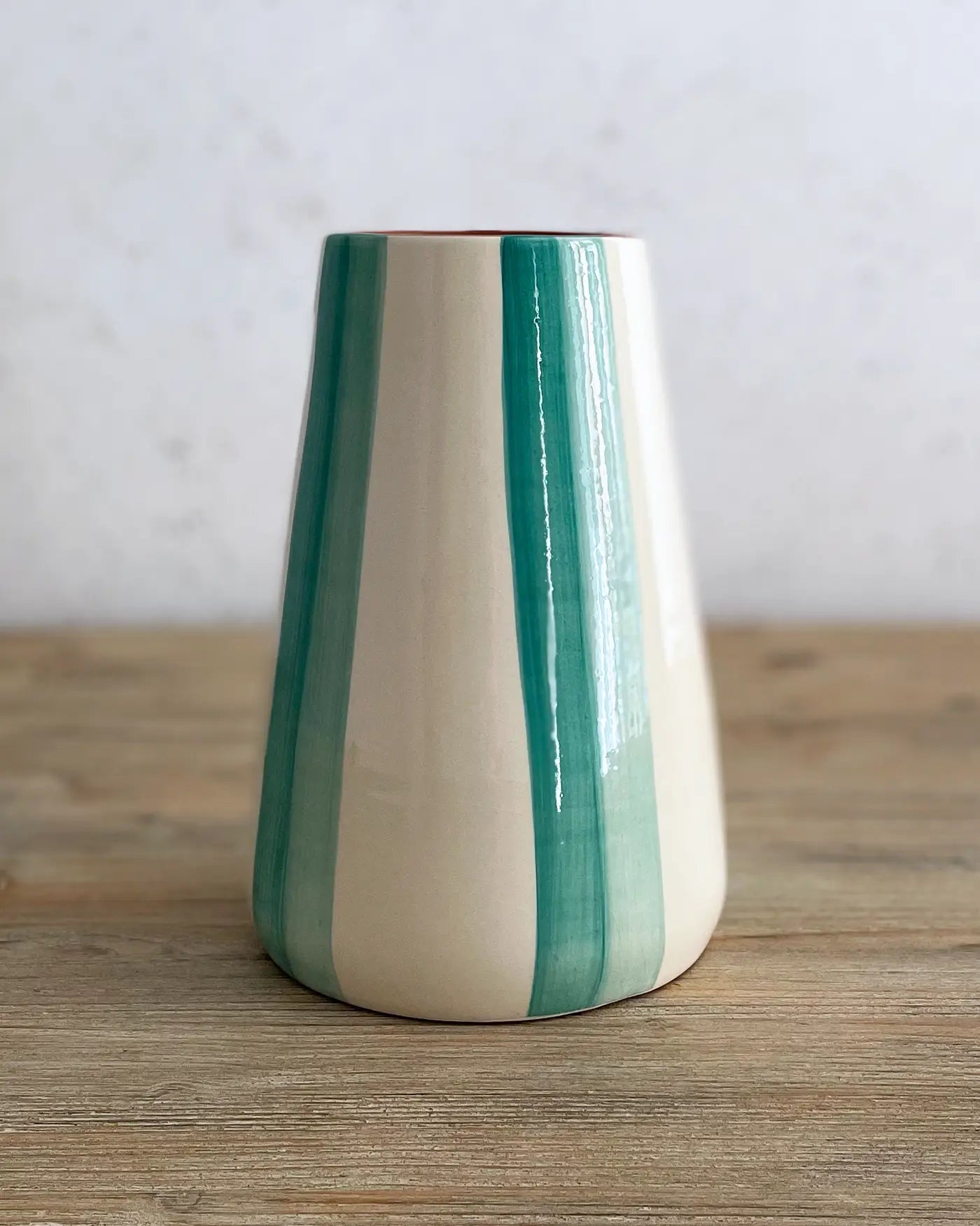 Jarrón Artesanal de Cerámica Rayas Turquesa L