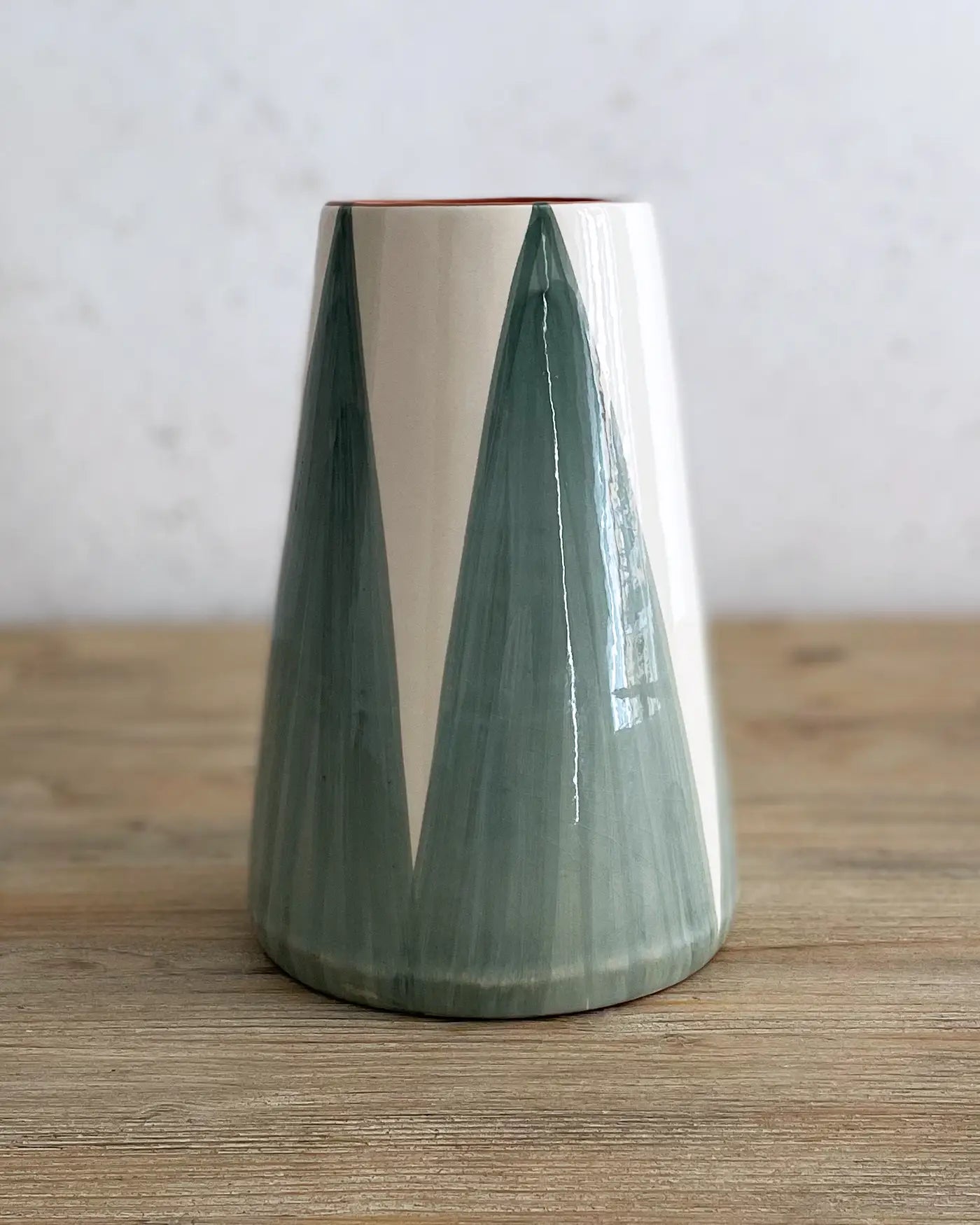 Jarrón Artesanal Vulcano Triángulos Verde Salvia L