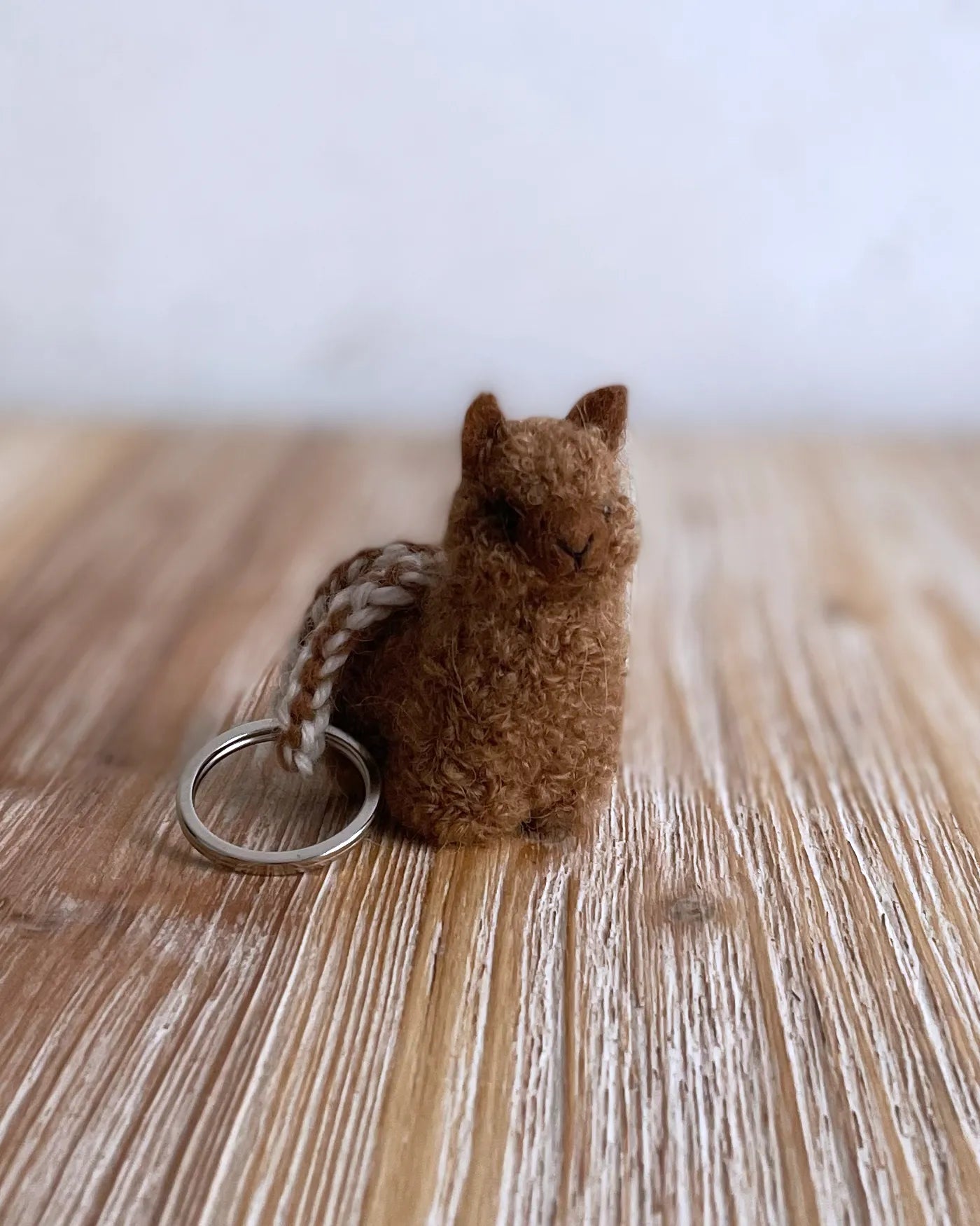 Este precioso llavero está hecho a mano con lana fina y suave de alpaca. La solución perfecta para las llaves perdidas, o para adornar tu bolso o cartera. ¡Su tacto te encantará!